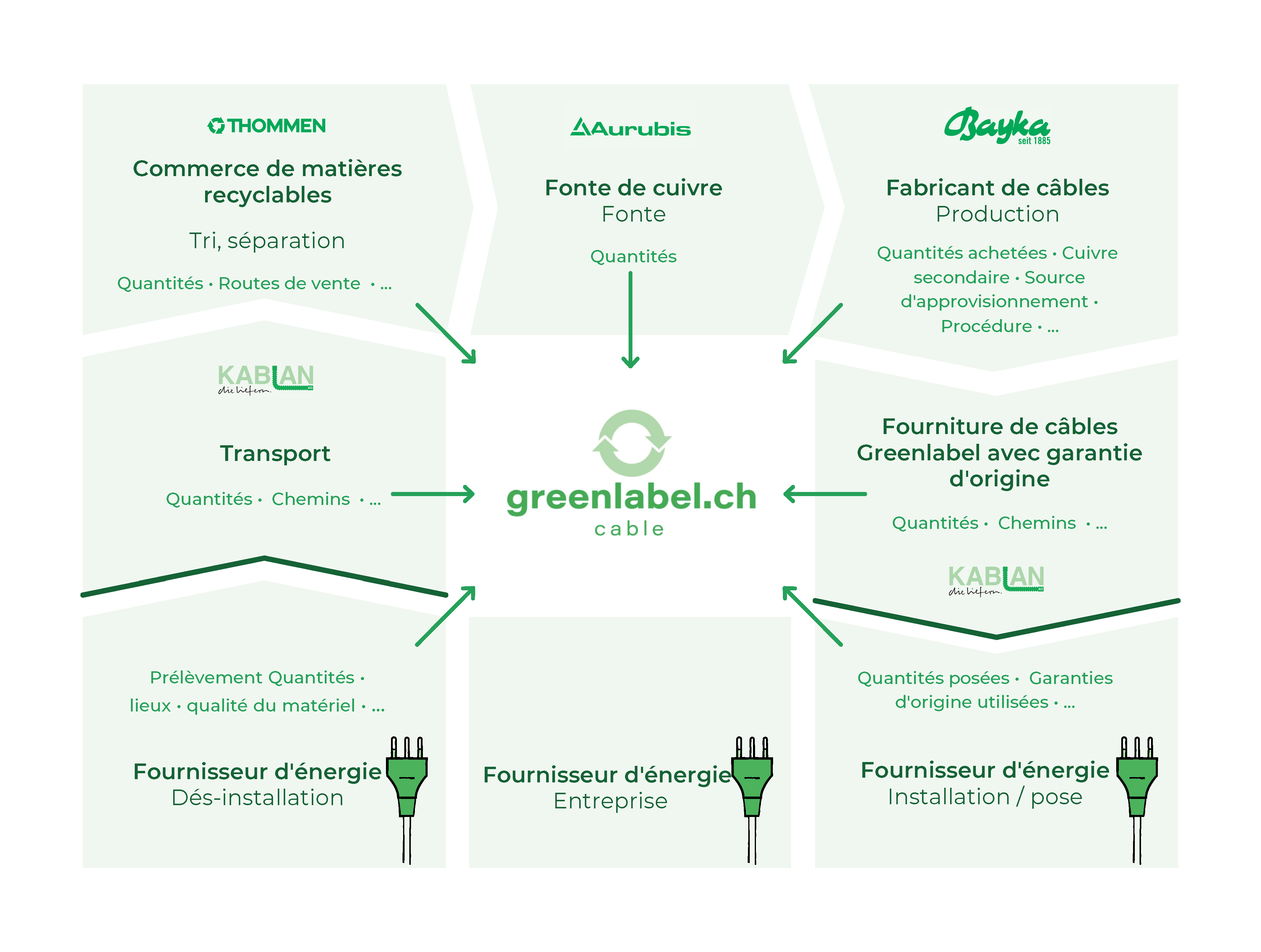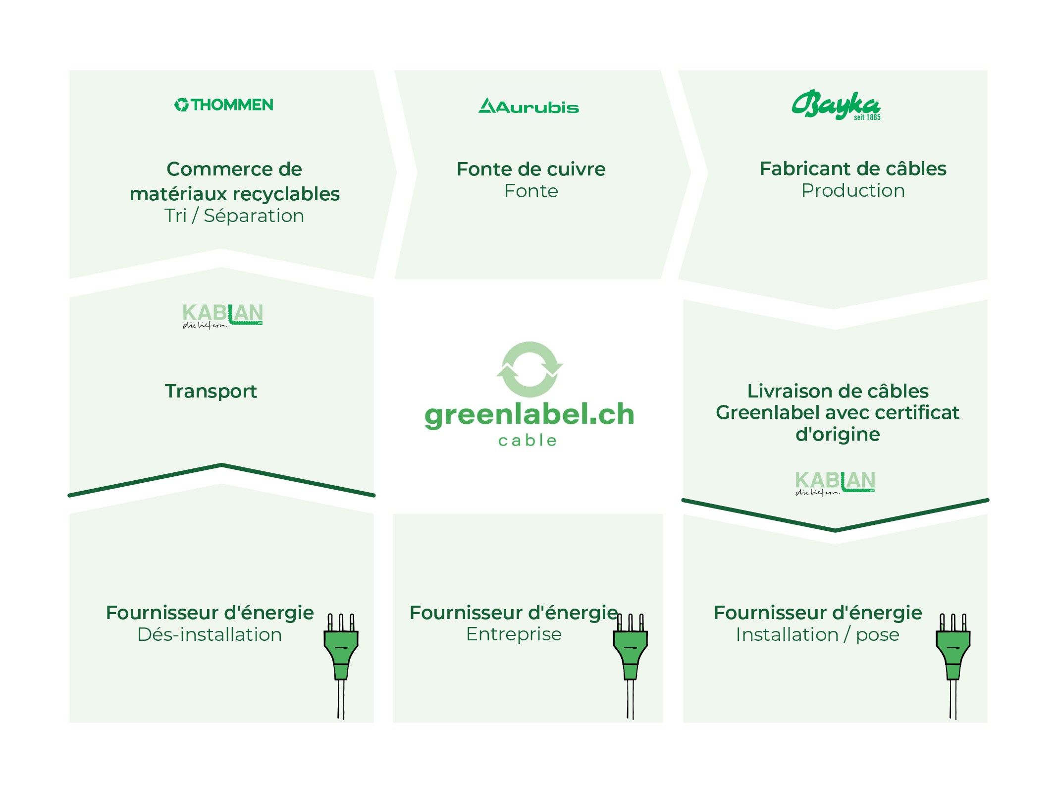 Greenlabel vise à augmenter la part de cuivre secondaire dans les nouveaux câbles. Cela permet de réduire l’empreinte carbone des câbles en cuivre tout en créant une véritable valeur ajoutée, justifiant les coûts plus élevés liés à l’utilisation de cuivre recyclé.